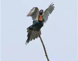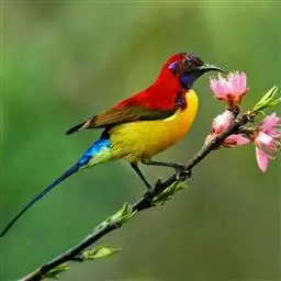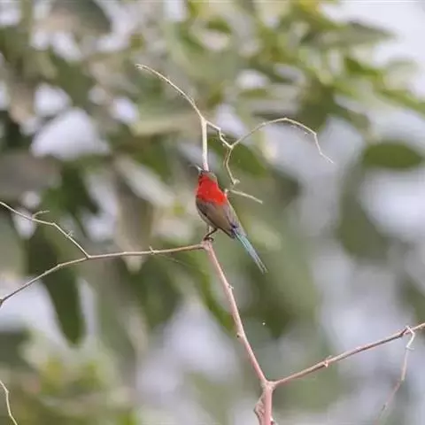 火尾太阳鸟为太阳鸟科太阳鸟属的鸟类。体长20厘米,色彩艳丽。雄鸟红色,具形长的艳猩红色中央尾羽。…