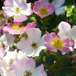 白蔷薇:直立灌木,高约2米;小枝有不等钩状皮刺,有时混有刺毛。小叶通常5,稀7,宽椭圆形或卵形,…