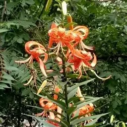 青岛百合(学名:Lilium tsingtauense)又名崂山百合,为多年生单子叶草本植物,原产于中国山东省,是中国百合科植物的特有种。青岛百合花色为橙红色或橙黄色,带淡紫色斑点,由5~7朵单花形成总状花序,花朵星状,花被不反卷,具有轮生叶。该物种集中分布于崂山北九水以南海拔400~1000m的区域内,一般生长于阴坡或半阴坡的森林中。被列入国家第二批稀有濒危植物名录。