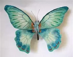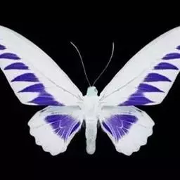 天堂凤蝶翅展可达105mm。前、后翅自基角至后缘约1/2~2/3端为纯净的宝蓝色,后角至后缘1/3…