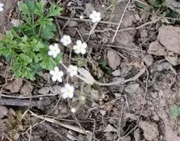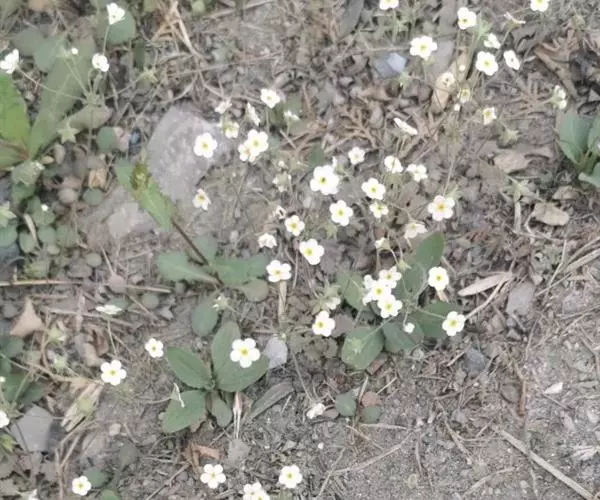 点地梅一年生或二年生无茎草本。全株被节状的细柔毛。主根不明显,具多数须根。叶全部基生,平铺地面;叶柄长1-4cm,被开展的柔毛;叶片近圆形或卵圆形,直径5-2omm,先端钝圆,基部浅心形至近圆形,边缘具三角状钝牙齿,两面均被贴伏的短柔毛。花葶通常数枚自叶丛中抽出,高4-15cm,被白色短柔毛。