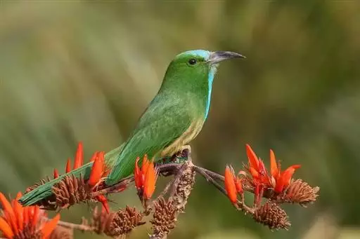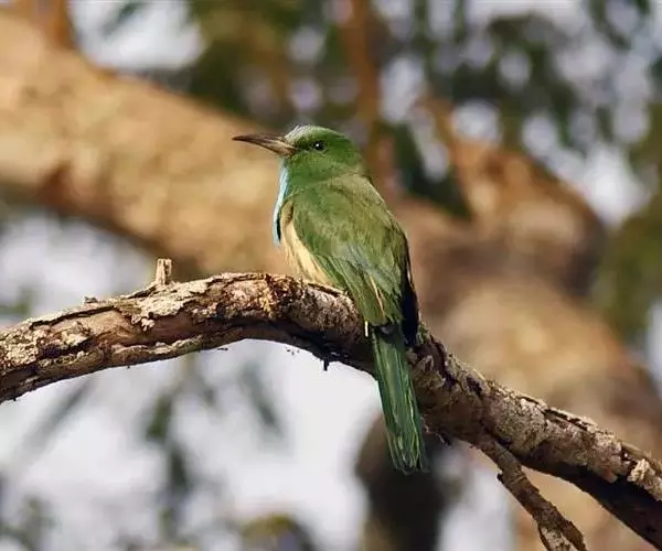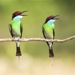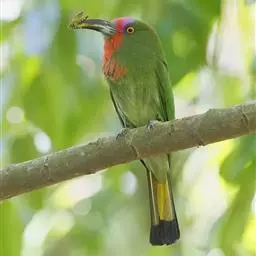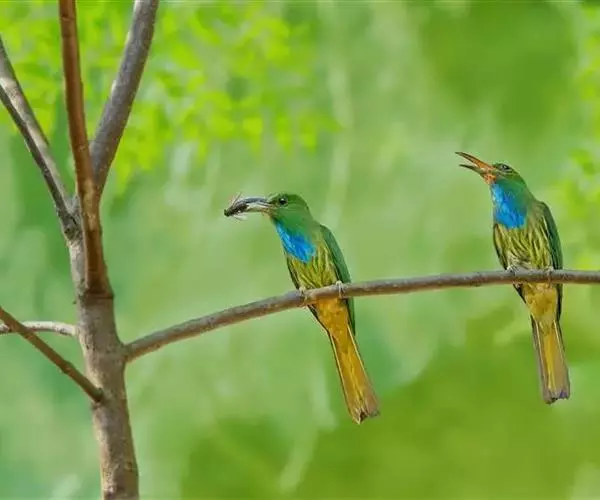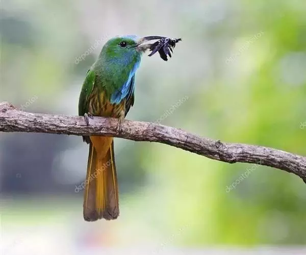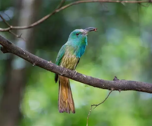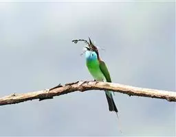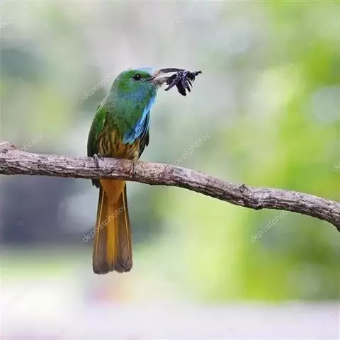 蓝须夜蜂虎是佛法僧目、蜂虎科的鸟类,体长约30厘米,是绿色林栖型蜂虎,蓝色的胸羽蓬松,嘴厚重而下弯…