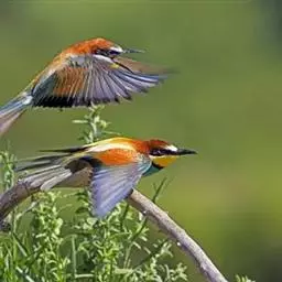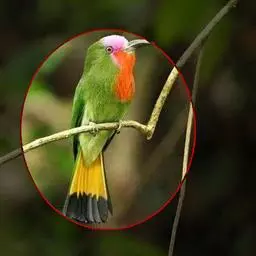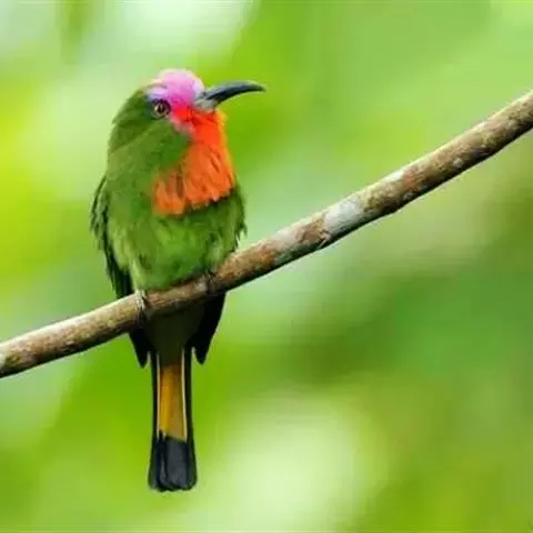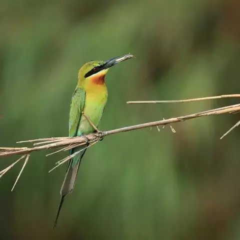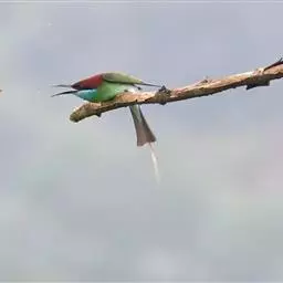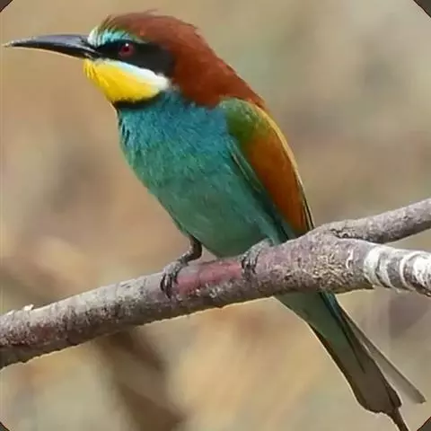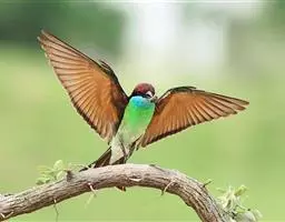 栗喉蜂虎是蜂虎科蜂虎属的鸟类。有热带鸟类羽毛艳丽的特征:喉部是栗红色的,黑色的过眼纹,…
