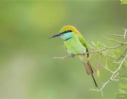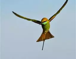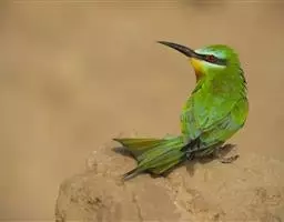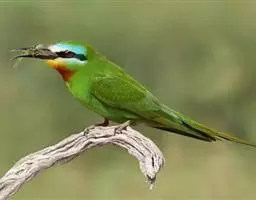 蓝须夜蜂虎(图8) (2种) 1. 蓝须夜蜂虎海南亚种(学名:Merops persicus chrysocercus)分布于撒哈拉沙漠西部边界,从摩洛哥到阿尔及利亚和塞内加尔,乍得,冬天到撒哈拉以南非洲。
