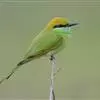 黄喉蜂虎属中型鸟类,体长23-30厘米。喉黄色,其下有一窄的黑色胸带;胸带以下的整个下体蓝绿色。…