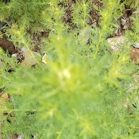 茵陈蒿(学名:Artemisia capillaris Thunb.)是菊科,蒿属半灌木状草本植物,植株有浓烈的香气。主根明显木质,茎单生或少数,高可达120厘米,红褐色或褐色,基生叶密集着生,常成莲座状;叶片卵圆形或卵状椭圆形,二(至三)回羽状全裂,每侧有裂片,小裂片狭线形或狭线状披针形,通常细直,头状花序卵球形,有短梗及线形的小苞叶,总苞片草质,卵形或椭圆形,背面淡黄色,有绿色中肋,花序托小,凸起;花柱细长,伸出花冠外,花冠管状,花药线形,长三角形,瘦果长圆形或长卵形。7-10月开花结果。