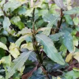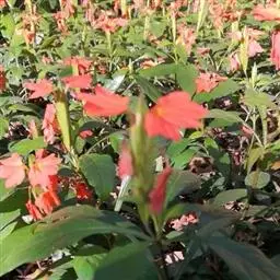 多年生草本,株高50-200cm,叶对生,广披针形至倒披针形,叶缘具不规则缺刻。新叶色金黄,后转为黄绿或翠绿。花顶生,于春夏季开花,红色或白色。