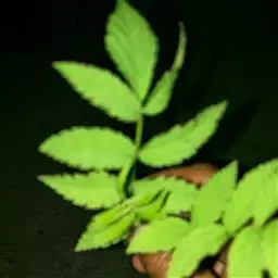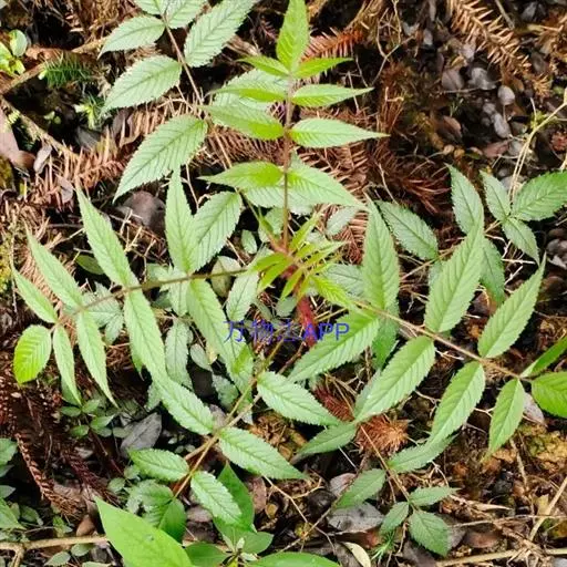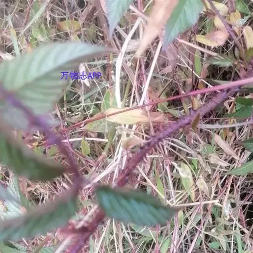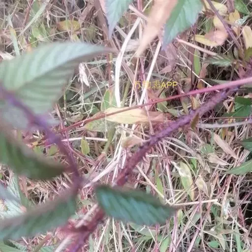 红腺悬钩子 直立或攀援灌木;小枝、叶轴、叶柄、花梗和花序均被紫红色腺毛、柔毛和皮刺;腺毛长短不等,长者达4-5毫米,短者1-2毫米。小叶5-7枚,稀3枚,卵状披针形至披针形,长3-8厘米,宽1.5-3厘米,顶端渐尖,基部圆形,两面疏生柔毛,沿中脉较密,下面沿中脉有小皮刺,边缘具不整齐的尖锐锯齿;叶柄长3-5厘米,顶生小叶柄长达1厘米;托叶披针形或线状披针形,有柔毛和腺毛。