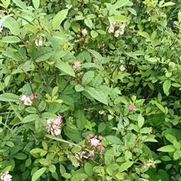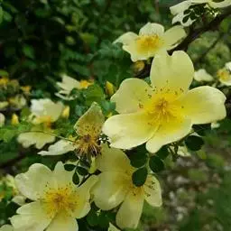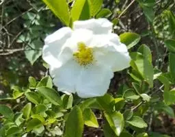 光叶蔷薇(学名:Rosa wichurana Crep.)是攀援灌木,高3-5米,枝条平卧,节上易生根;小枝红褐色,皮刺小,常带紫红色,小叶5-7,叶片椭圆形、卵形或倒卵形,花多朵成伞房花序;苞片卵形,萼片披针形或卵状披针形,花瓣白色,有香味,倒卵形,果实球形或近球形,紫黑褐色,有光泽,花期4-7月,果期10-11月。