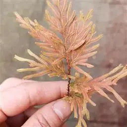 主茎自中下部羽状分枝,不呈“之”字形,无关节,禾秆色,主茎下部直径1.8-3毫米,茎卵圆柱状或近四棱柱形或具沟槽,维管束3条,主茎顶端黑褐色或不呈黑褐色,或连同上部侧枝的基部也变成黑褐色,侧枝5-8对,1回羽状分枝,或基部2回,小枝较密排列规则,主茎上相邻分枝相距2.8-5.2厘米,分枝无毛,背腹压扁,主茎在分枝部分中部连叶宽5-6毫米,末回分枝连叶宽4-5毫米。