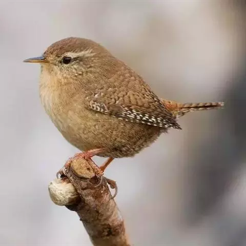 冬鹪鹩(学名:Troglodytes troglodytes)是一种小型鸣禽,原产于北美的冬鹪鹩,传入旧大陆后简称鹪鹩。有44个亚种,广泛分布于北半球。成鸟体长9 -10厘米,翼展13-17 厘米,体重8-13克。通体褐或棕褐色,具众多的黑褐色细横斑。飞羽黑褐色,外侧的5枚初级飞羽外翈具10-11条棕黄白色横斑,极为明显。尾较短而狭,栖止时尾常常高高举起,鸣管结构及鸣肌复杂,善于鸣啭,叫声多变悦耳;鸣唱时呈仰首翘尾之姿,鸣声清脆响亮。离趾型足,趾三前一后,后趾与中趾等长;腿细弱,跗跖后缘鳞片常愈合为整块鳞板;雀腭型头骨。