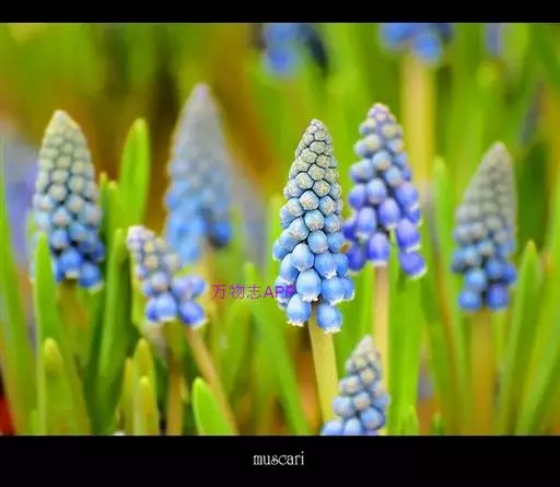 葡萄风信子是观赏性较强的多年生花卉,它植株低矮整齐,花序端庄,花姿美丽,色彩绚丽,在光洁鲜嫩的绿叶衬托下,恬静典雅,是早春开花的著名多年生花卉。
