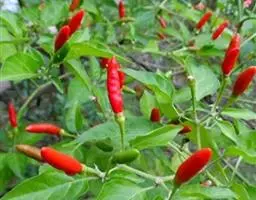 朝天椒茄科辣椒属一年或多年生草本植物;卵形;花通常单只生长于二分叉间,花梗直立,花稍俯垂,…