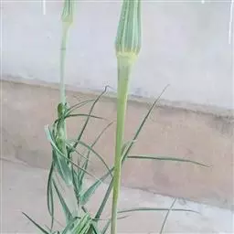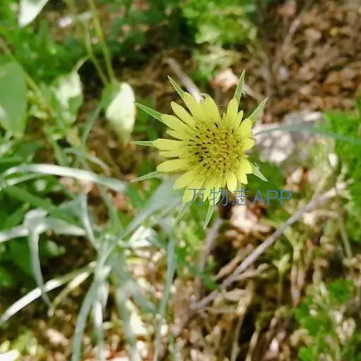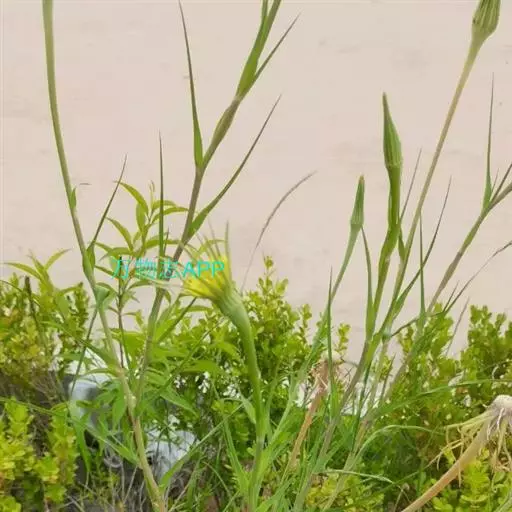二年生草本,高30-60 (90)厘米。根圆柱状,垂直直伸,根颈被残存的基生叶柄。茎直立,不分枝或分枝,有纵条纹,无毛。基生叶及下部茎叶线形或线状披针形,长10-25(40)厘米,宽3-18(24)毫米,灰绿色,先端渐尖,全缘或皱波状,基部宽,半抱茎;中部及上部茎叶披针形或线形,长3-8厘米,宽3-10毫米。头状花序单生茎顶或植株含少数头状花序,生枝端。总苞圆柱状,长2-3厘米。总苞片8-10枚,披针形或线状披针形,长1.5-3.5厘米,宽5-10毫米,先端渐尖,边缘狭膜质,基部棕褐色。舌状小花黄色。瘦果长纺锤形,褐色,稍弯曲,长1.5-2厘米,有纵肋,沿肋有疣状突起,上部渐狭成细喙,喙长6-8毫米,顶端稍增粗,与冠毛连接处有蛛丝状毛环。冠毛淡黄色,长1-1.5厘米。花果期5-9月。