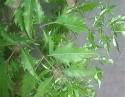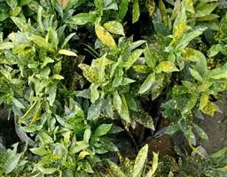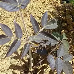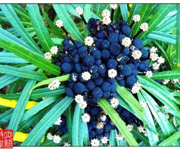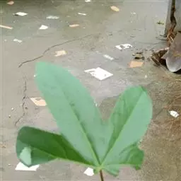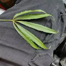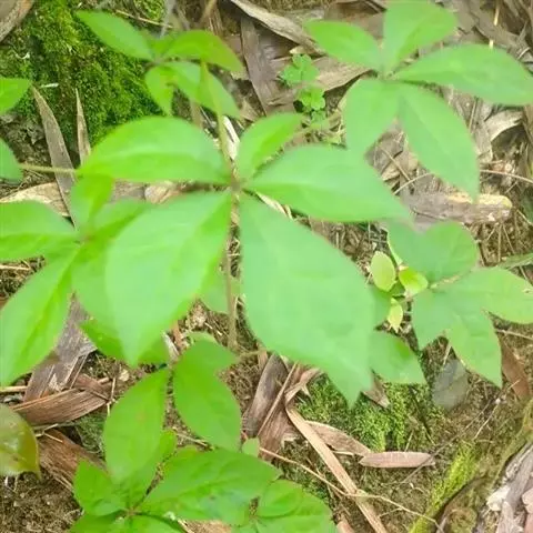 叶互生,掌状复叶,小叶5枚,线状披针形,近先端边缘有疏细锯齿,革质,叶面具有金黄色斑纹。