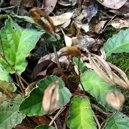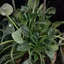 叶8-10枚,具长柄;叶片纸质,圆卵形或卵形,长0.7-2厘米,宽0.5-1.5厘米,顶端圆形或钝,基部浅心形或圆形,边缘有浅圆齿,上面被稍密短柔毛,下面密被白色短毛,侧脉每侧3-4条,不明显;叶柄长0.5-3.5厘米,与花序梗及花梗被开展短柔毛。