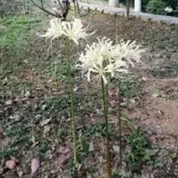 陕西石蒜草本,地生。鳞茎近球形;叶带状;伞形花序,有花5-8朵,白色,花被裂片腹面散生少数淡红色条纹,…