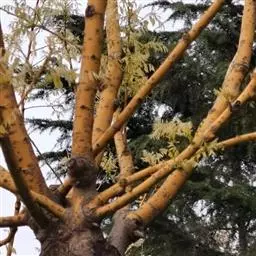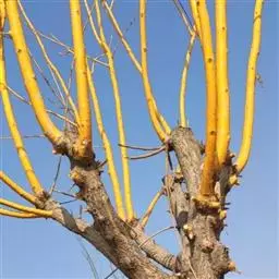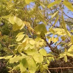 金枝国槐发芽早,幼芽及嫩叶淡黄色,5月上旬转绿黄,秋季9月后又转黄,每年11月至第二年5月,其枝干为金黄色,因此得名,是优良的绿化美化树种 。
