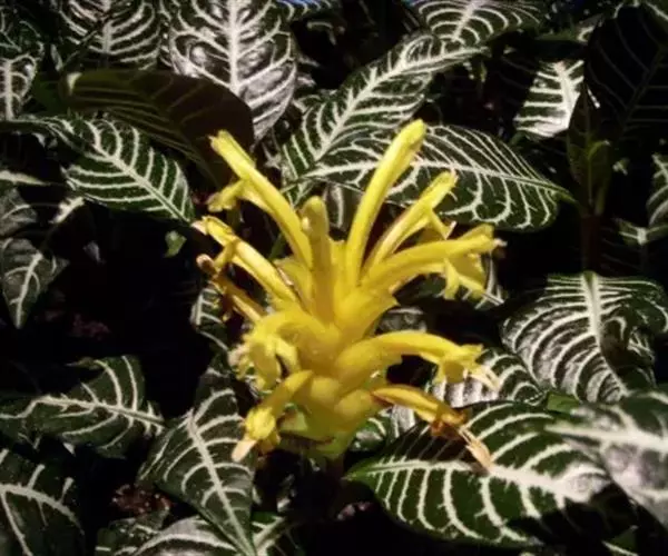 金脉单药花(学名:Aphelandra squarrosa Nees cv. Dania)多年生草本植物。叶对生,长椭圆形;全缘而微向内卷;深绿色,叶脉淡黄色或黄色。花为顶生穗状花序,黄色,花期夏秋季,花期长达2 个月。