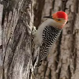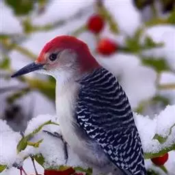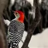 红腹啄木鸟成年雄鸟头项有红帽,翅膀和上体是黑白相间的斑纹状羽毛,腹部有一片红羽毛。头亦大,但颈较长,…