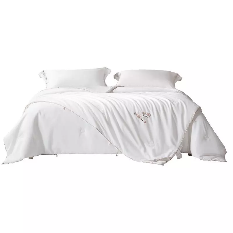 最好的蚕丝被应该是用100桑蚕丝做填充物。因蚕在生长过程中不能碰农药等化学物品,因此蚕丝被应该是“绿色”环保的被子。