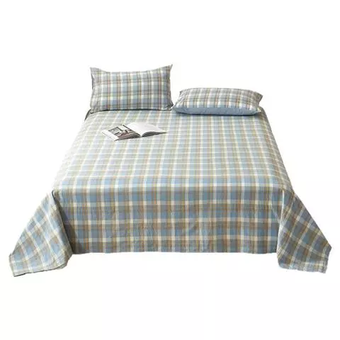 色织纯棉为纯棉面料的一种,是用不同颜色的经、纬纱织成。由於先染後织,染料渗透性强,色织牢度较好,且异色纱织物的立体感强,风格独特,被子中多表现为条格花型。它具有纯棉面料的特点,但通常缩水率更大。
