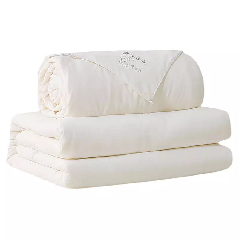 第五:把蚕丝被摺好後用力压一下,回弹比较慢,这五种方法都能帮你轻松选购到优质的蚕丝被。