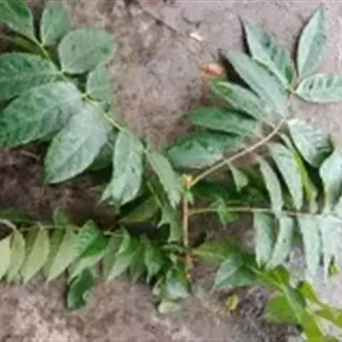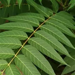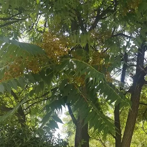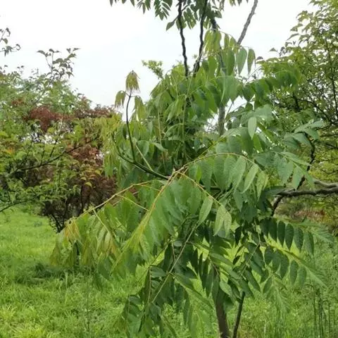 落叶乔木,高达10余米;树皮紫褐色,平滑,有灰色斑纹,全株有苦味。叶互生,奇数羽状复叶,长15-30厘米;小叶9-15,卵状披针形或广卵形,边缘具不整齐的粗锯齿,先端渐尖,基部楔形,除顶生叶外,其余小叶基部均不对称,叶面无毛,背面仅幼时沿中脉和侧脉有柔毛,后变无毛;落叶后留有明显的半圆形或圆形叶痕;托叶披针形,早落。