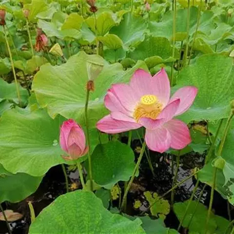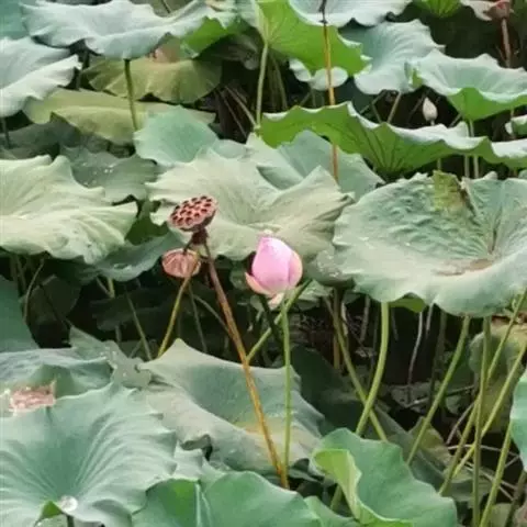 莲蓬(图2) 莲花是水生植物,性喜相对稳定的平静浅水,湖沼、泽地、池塘是其适生地。同时它对失水十分敏感,夏季只要3小时不灌水,缸栽荷叶便萎靡,若停水一日,则荷叶边焦,花蕾回枯。它还非常喜光,生育期需要全光照的环境。它极不耐荫,在半荫处生长就会表现出强烈的趋光性。