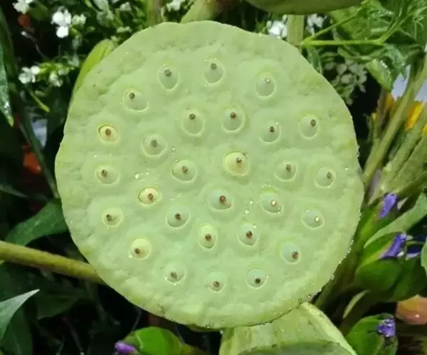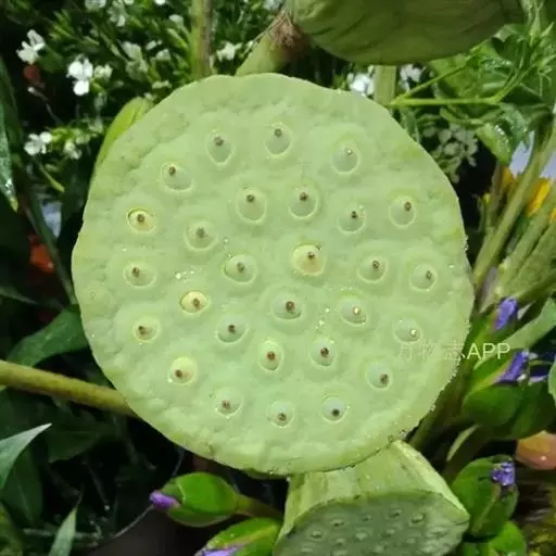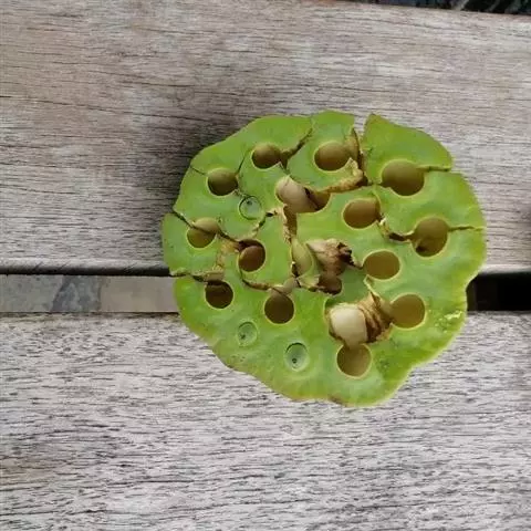 莲蓬又名:莲子肉;藕实;水芝丹;莲蓬子;莲实;蓬肉。莲的花托表面有多数散生蜂窝状孔洞,受精后逐渐膨大而称之为莲蓬。简单来说,莲花中心的果实就是莲蓬。莲蓬像一个碗。