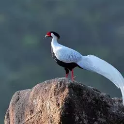 白鹇,是鸡形目雉科鹇属的一种留鸟。雄鸟上体白色并具黑色纹,下体黑色,头顶具黑色长羽冠,…