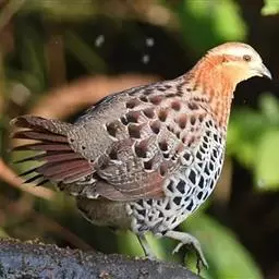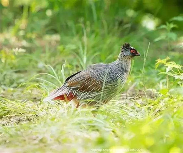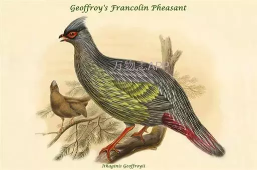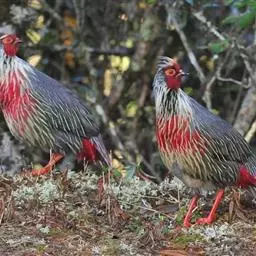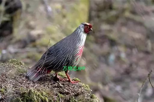 血雉雉科血雉属鸟类,别名血鸡、松花鸡,血雉的雄鸟大覆羽、尾下覆羽、尾上覆羽、脚、头侧、腊膜为红色,…