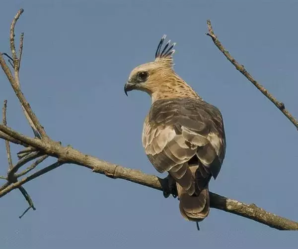 鹰雕,是隼形目鹰科鹰雕属大型猛禽,俗称熊鹰、赫氏角鹰。其上体暗褐色,头后冠羽常竖立起,…