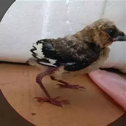 虹膜-红色;嘴-橙红;脚-灰色。