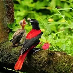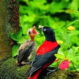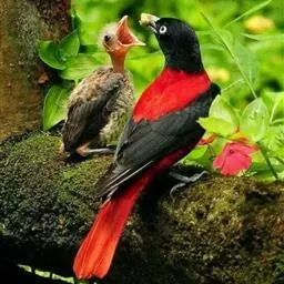 本种特有的高音似啄木鸟的kich叫声,也发出黄鹂特有的笛音。