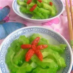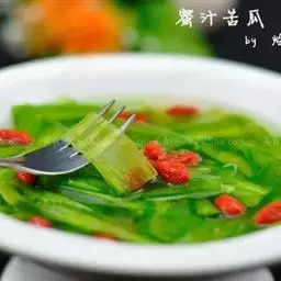 炒苦瓜以苦瓜主料制作的药膳。菜爪苦肉 香,咸鲜苦凉,苦中有鲜味,能刺激人体唾液和胃液分泌,…