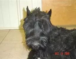 耳朵偏高位置,覆盖着中等被毛,耳朵通常都被修剪过,短而下垂。 黑色深色眼睛,眼睛深邃,呈椭圆形,大小适中。