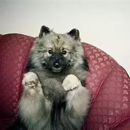 荷兰毛狮犬耳朵小,呈三角形,在头部较高的位置,且竖立;口吻中等长度,既不粗糙也不尖细,…