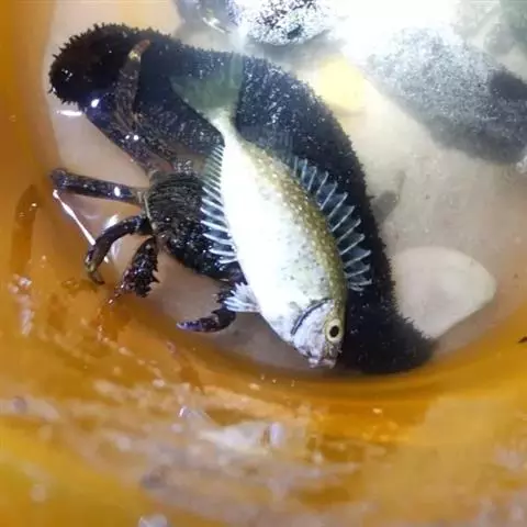 1.材料 催产药物绒毛膜促性腺激素(HCG)、地欧酮马来盐酸(DOM)、促性腺释放激素类似物(LRH-A2)、聚维酮碘。工具亲鱼夹、一次性注射器(1mL、5mL、10mL)、镊子、研钵、量筒、温度计、秤、托盘天平、解剖盘、面盆、毛巾、纱布、药棉等。 2.方法 野生岩原鲤的采捕和运输亲鱼来源于丽江市华坪县新庄河流域及其支流中收捕的野生岩原鲤;在当地鱼塘进行1周左右的暂养,待亲鱼恢复自然状态后再运输。驯化养殖到达塘边后,使用聚维酮碘涂抹鱼体伤口 消毒,放养于池塘进行驯化养殖。亲鱼池面积以2亩~2.5亩为宜,水深2.0m~2.5m。2月份~3月份主要投喂精饲料(即大麦、玉米、豆饼、菜饼、鱼粉等按一定比例配制成颗粒饲料)。池水透明度保持在40cm左右,平均15天换水一次,每次换水1/4。每个月全池遍撒生石灰,浓度为40mg/L,pH值保持在7.6~8.6。产前每天冲水3小时~5小时,以刺激亲鱼性腺发育。 3.人工催产繁殖 亲鱼选择在4月下旬至5月上旬,水温在19℃~27℃时,选择体质健壮、体形肥满,发育情况较好的鱼进行催产。此时,轻压雄鱼后腹,有乳白色精液流出,遇水立即散开;雌鱼生殖孔红肿,腹部略显卵巢轮廓即可。注射催产剂采用2次注射法,注射部位为腹鳍基部,保证亲鱼发情时间较一致,提高产卵率、产卵量和受精率。水温25℃时,2次注射的间隔时间为12小时,效应时间为10小时~11小时。催产剂量为雌鱼第1次注射LRH-A210ug+DOM4mg+HCG1000IU/kg;雄鱼减半。人工受精。采用剖雄鱼取精巢、雌鱼挤卵的干法人工授精。用事先准备好的滑石粉悬浮液(脱粘剂)慢慢地倒入盛受精卵的盆中,一边倒一边用羽毛轻轻地搅拌,这样受精卵不会出现结块现象。悬浮液变清后,撇出上层清液,再逐渐边加入悬浮液,边搅拌。这样重复操作3次~4次,经20分钟,受精卵全部呈分散颗粒状即可移入孵化池中孵化。在进行人工授精的过程中,应避免精、卵受阳光直射。人工孵化。将受精卵布于孵化格的网片上,在孵化池中采用静水曝气在23℃水温下孵化。同时专门设置一个面积为2亩的晒水池塘,水经过3次过滤处理后,才能作为孵化用水。为防止水霉病的感染,受精卵进入孵化池前,用霉菌净浸卵10分钟~15分钟后,才进入孵化池;在鱼苗出膜前,水质要定期用霉菌净进行消毒。鱼苗出膜后,待卵黄囊基本消失、鱼苗具有游泳能力、能主动觅食时,及时下塘进行苗种培育。