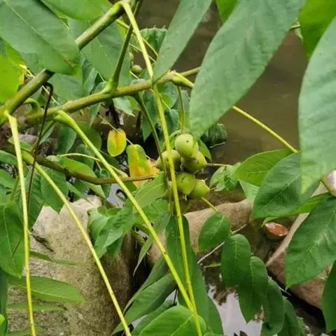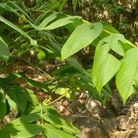 胡桃楸是胡桃科、胡桃属的乔木植物。株高可达20余米;茎皮灰色;叶椭圆形、长椭圆形、卵状椭圆形或长椭圆状披针形,具细锯齿,上面初疏被短柔毛,后仅中脉被毛,下面被平伏柔毛及星状毛;雄葇荑花序轴被短柔毛,雌穗状花序轴被茸毛;果序俯垂,果球形、卵圆形或椭圆状卵圆形,顶端尖,密被腺毛,果核棱间具不规则皱曲及凹穴,顶端具尖头;种仁较小;花期5月;果期8-9月。胡桃楸分布于中国黑龙江、吉林、辽宁、内蒙古、山西、河南、河北等省地,朝鲜、俄罗斯、日本等国家亦有分布。其喜温暖凉爽的生存环境,适宜在土层深厚、疏松肥沃、排水良好的黑垆土上栽培。一般繁殖方式为种子繁殖。胡桃楸具有止痛、敛肺定喘、温肾润肠、清热解毒等功效,可用于治疗胃痛、神经性皮炎、体质虚弱、肺虚咳嗽、肾虚腰痛、细菌性痢疾等症状。因其木材反张力小、不挠不裂,可作枪托、车轮、建筑等重要材料。