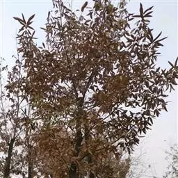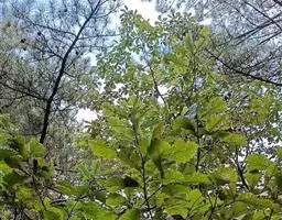 乔木,高达20余米;枝条扩展,树冠扁圆形;树皮灰色,具浅纵裂;幼枝被有短茸毛。