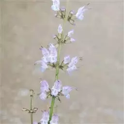 天蓝鼠尾草根系发达,地上部分丛生,为多年生草 天蓝鼠尾草 本植物,茎基部略木质化,株高30-90厘米,较矮,全株组织内含挥发油,具强烈芳香和苦味,略有涩味。茎四方形,分枝较多,有毛。叶对生,灰银色,长椭圆形,先端圆,长3-5厘米,有叶柄,全缘或具钝锯齿,绿色,质地厚,叶面有折皱,上密布白色绒毛,触感犹如天鹅绒,基部叶片近叶柄较窄,茎上叶片长,较尖。8月开花,唇形花10个左右轮生,开于茎顶或叶腋,花紫色或青色,有时白色,花冠唇形。 花6-10朵成串轮生于茎顶花序上十分美丽。种子近圆形,千粒重4克,发芽力3年以上。