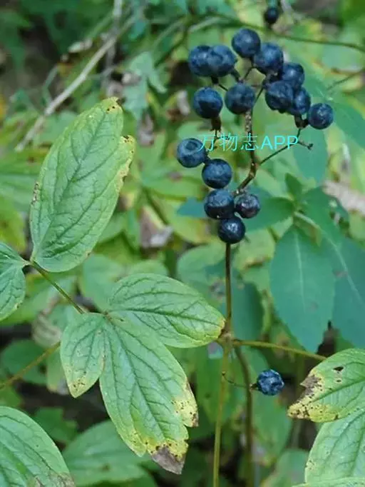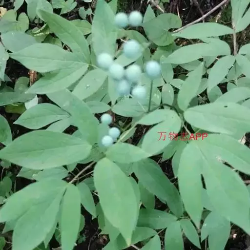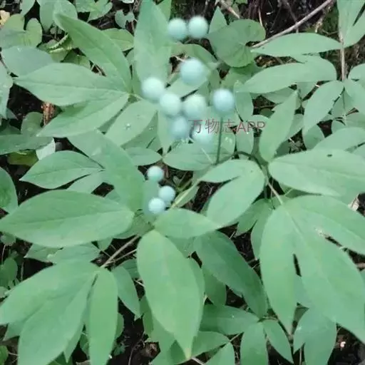 红毛七,又名类叶牡丹、红毛三七。多年生草本,高40-70cm。根茎粗壮,具不明显的节,须根多数,密生,红褐色。叶互生,着生于茎顶端,为二至三回羽状复叶;一回和二回小叶柄分别长10-25cm和2-8cm,三回侧生小叶近无柄,顶生小叶柄长1-5cm;小叶片卵形或椭圆状披针形,长3.5-9cm,宽1.4-5cm,先端渐尖,基部宽楔形,全缘或有时2-3裂,两侧通常不对称,上面绿色,下面灰白色。短圆锥花序顶生,小花梗细长,基部有卵状披针形小苞片;花黄色,小形,直径约1cm;萼片6,花瓣状;花瓣6,退化或线形;雄蕊6,花药先端2瓣裂;雌蕊1,子房1室,内含2胚珠,花柱短,柱头侧生。蒴果极易开裂,露出2个种子呈果实状。种子球形,成熟后蓝黑色,外面微被白粉。花期4-6月,果期7-8月。