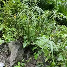 乌毛蕨 乌毛蕨喜温暖阴湿环境,抗逆性、耐热性强。生长适温16~24℃,耐高温多雨,适应性较广,在夏季高温条件下生长良好;但不耐寒,冷时生长不良。生长于较阴湿的水沟旁及坑穴边缘,也生长于山坡灌丛中或疏林下,海拔300-800米。该种为中国热带和亚热带的酸性土指示植物,其生长地土壤的pH值为4.5-5.0。