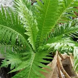 分株繁殖将母株用利刀分成2个或多个单独的植株,每个小株至少有1个芽,并使母株保持足够生长的根状茎。分株时,要剪掉过大的根系和枯叶、叶柄及受伤部分。分株后,要将小株栽培于排水良好的基质中并适当遮阳,保持足够的温度和湿度,保护好新的拳芽和未展开的叶。