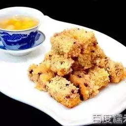 叫花鸡 叫花鸡,是江南名吃,历史悠久,是把加工好的鸡用泥土和荷叶包裹起好,用烘烤的方法制作出来的一道特色菜。只要是看过金庸小说《射雕英雄传》的同学肯定知道这道菜。用泥巴把鸡包起来,架火烧泥巴,泥烧热了鸡也就熟了。它又名富贵鸡,原是乞丐所创造,故称叫花(化)鸡。相传朱元璋带兵打江山时,有一次朱元璋又打了败仗跑了三天三夜,敌人在后面穷追不舍,朱元璋筋疲力尽,饥饿难忍,就在这时看到前方地上有一堆火,火中间还有一堆泥巴,旁边蹲着一位老叫花(化),朱元璋好奇地问道:“你在这里干什么?”老叫花(化)一看是朱元璋,就忙说:“我在烤鸡献给大王。”朱元璋一听非常惊奇,老叫花(化)把鸡从火中取出,打开泥巴,香味扑鼻。朱元璋边吃边赞不绝口,“非常好吃”。从此以后,朱元璋打仗一帆风顺,当了皇帝。后来朱元璋就封此鸡为“富贵鸡”。