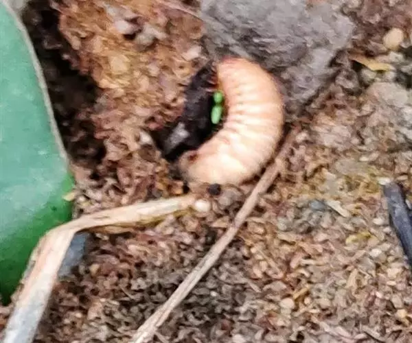 长10-15毫米,前端肥钝,后端略尖削,近似椭圆形。初为乳白色,近羽化时变为黄褐色。