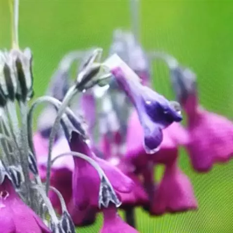 长1-5厘米,被粉质腺体;花萼钟状,长3.5-5.5毫米,外面被粉质腺体,分裂约达中部,裂片狭三角形,边缘具小腺毛;花冠蓝紫色或淡蓝色,冠筒口周围橙黄色,冠简管状,长9-12毫米,冠檐直径1-1.5 厘米,裂片倒卵形,先端具深凹缺;长花柱花:雄蕊着生于冠筒中部,花柱微伸出冠筒口;短花柱花:雄蕊靠近冠筒喉部环状附属物,花柱约与花萼等长。蒴果长圆形,略长于宿存花萼。花期5-7月,果期8-9月。