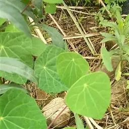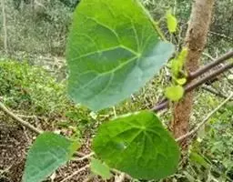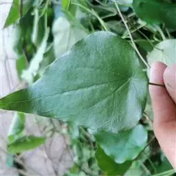 2、头花千金藤:S.cepharanthaHayataexyamamoto又称金钱吊乌龟,藤木,块根肥厚,长椭圆形,外皮暗褐色。茎基部木化,带紫色。叶互生、柄细长;叶片盾状着生,三角状圆形,长宽近等,全缘,上面深绿色,下面灰白色。花雌雄异株,头状聚伞花序腋生。核果球形,熟时紫红色,根入药,称白药子。