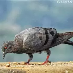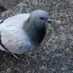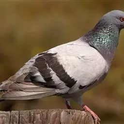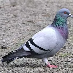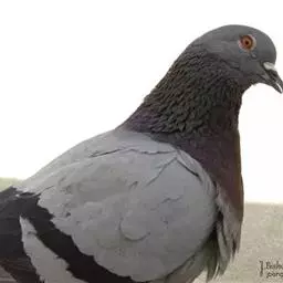 原鸽(学名:Columba livia):体重194-347克,体长295-355毫米。是中等体型的蓝灰色鸽。翼上横斑及尾端横斑黑色,头及胸部具紫绿色闪光。头、颈、胸、上背等均暗石板灰色,下颈及上胸有些金属绿色和紫色闪光,背面余部淡灰色;下体自胸以次亦然;尾具宽阔的黑端,但无白色横斑。雌雄同色,但雌鸟体色一般要暗一些。虹膜橙红色,嘴浅角色,基部呈紫红色;跗蹠及趾为黄铜色至洋红色,爪黑色。